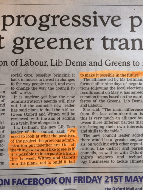 Without rail, Witney’s growth strategy will fail due to transport constraints. The strategy needs rail to be deliverable.