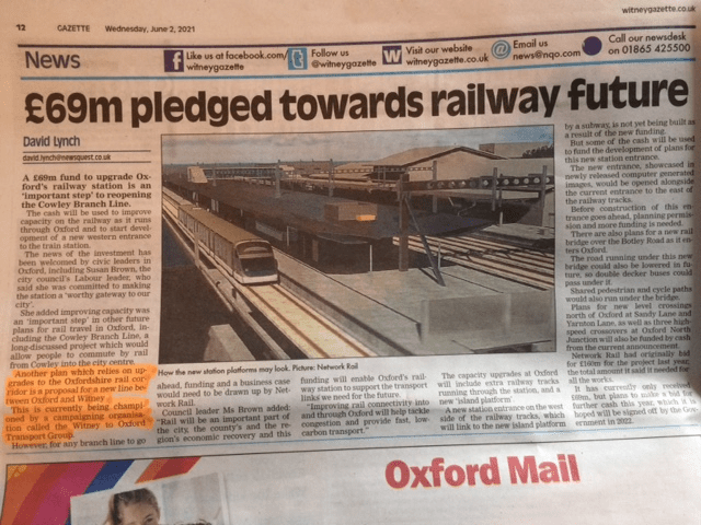WOT Response: “Town centre vitality depends on accessibility – rail is essential for both Witney and Carterton centres.
